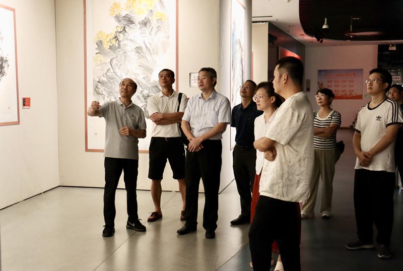温永一行仔细观看展出作品,认真听取章城伍介绍作品创作思路、创作手法和创作感受。温永对作品展成功举办表示祝贺,肯定章城伍在艺术创作和教学领域所取得的优秀成果,并鼓励他们师生创作出更多更好的精品力作。