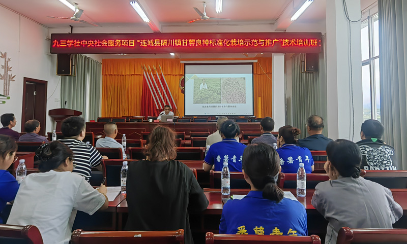 在技术培训会上,社龙岩市委委员、龙岩市农科所研究员、九三学社龙岩市委甘薯产业科技特派员团队发起人何胜生作了题为《加工型甘薯良种“济薯26”标准化栽培及加工利用》的辅导讲座。讲座案例生动、通俗易懂,参训的种植户与甘薯加工技术人员纷纷表示收获颇丰,将把所学知识运用到实际生产中。