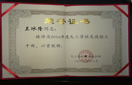 兰冰隆获社中央先进组工干部表彰