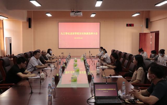 9月16日,九三学社龙岩学院支社召开社员大会。九三学社龙岩市委主委、龙岩市自然资源局局长温永,中共龙岩学院党委统战部部长黄雪英,社龙岩市委专职副主委郭厚祥出席会议。